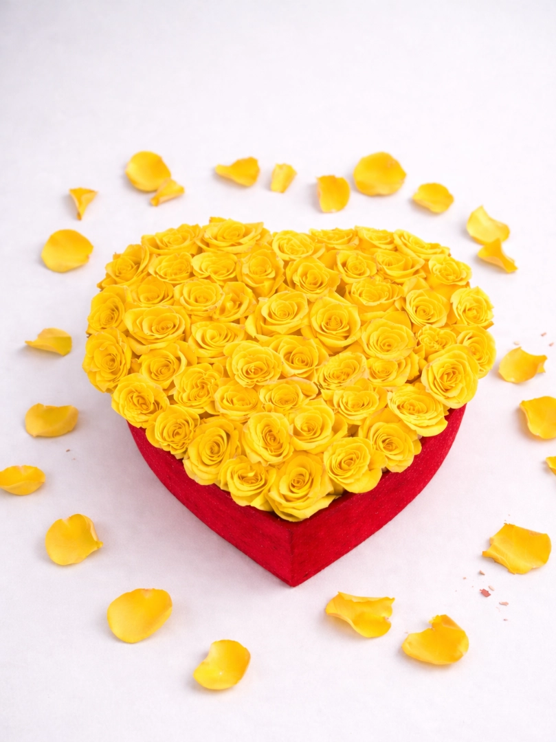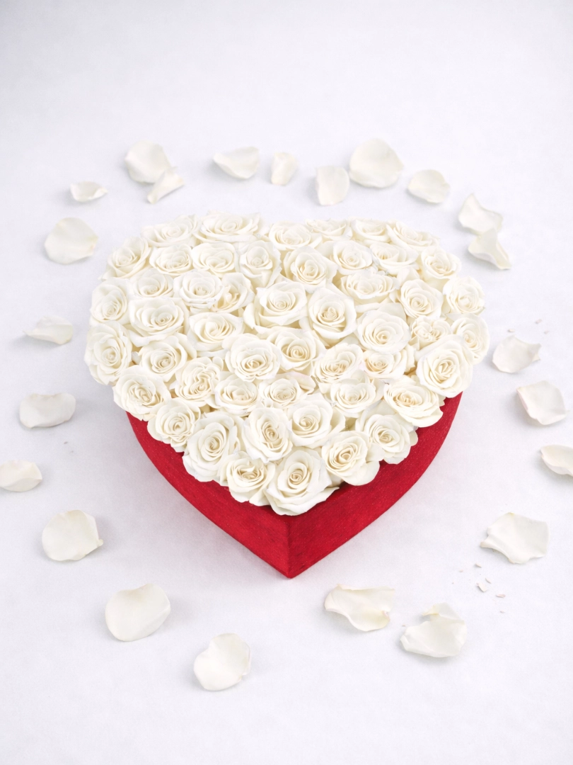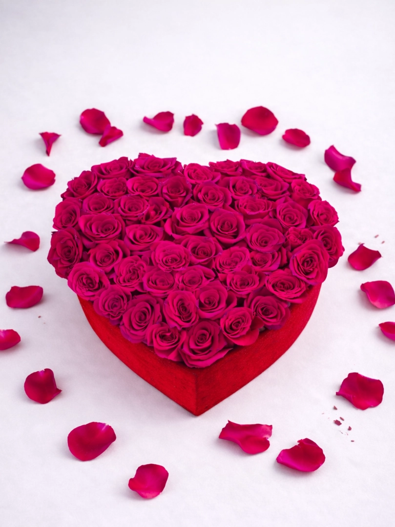 Роскошная цветочная композиция в форме сердца, созданная из свежих роз премиум-класса, — идеальный способ выразить любовь, страсть и искренние чувства. Бархатные бутоны плотно собраны в элегантной коробке-сердце, подчеркивая утончённость и романтичность подарка.