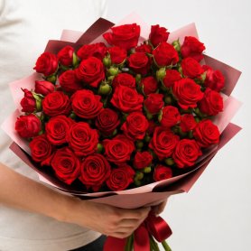 Окунитесь в мир элегантности и страсти с нашим роскошным букетом из красных кустовых роз. Этот букет – идеальный выбор для тех, кто хочет выразить свои чувства ярко и искренне. Кустовые розы с насыщенными, глубокими оттенками красного символизируют любовь, страсть и привязанность, создавая невероятную атмосферу тепла и нежности.