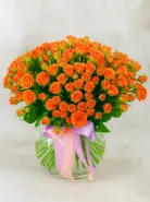 Купить букет из оранжевых кустовых роз с быстрой доставкой по городу вы можете в нашем интернет-магазине. Мы собираем композицию непосредственно перед отправкой, чтобы розы дольше радовали свежестью, ароматом и сочным цветом.
