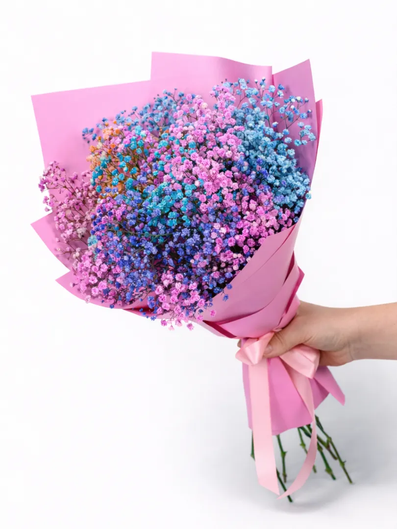 Яркий, как радуга после дождя, лёгкий, как облако — букет из радужной гипсофилы подарит настоящее счастье с первого взгляда!