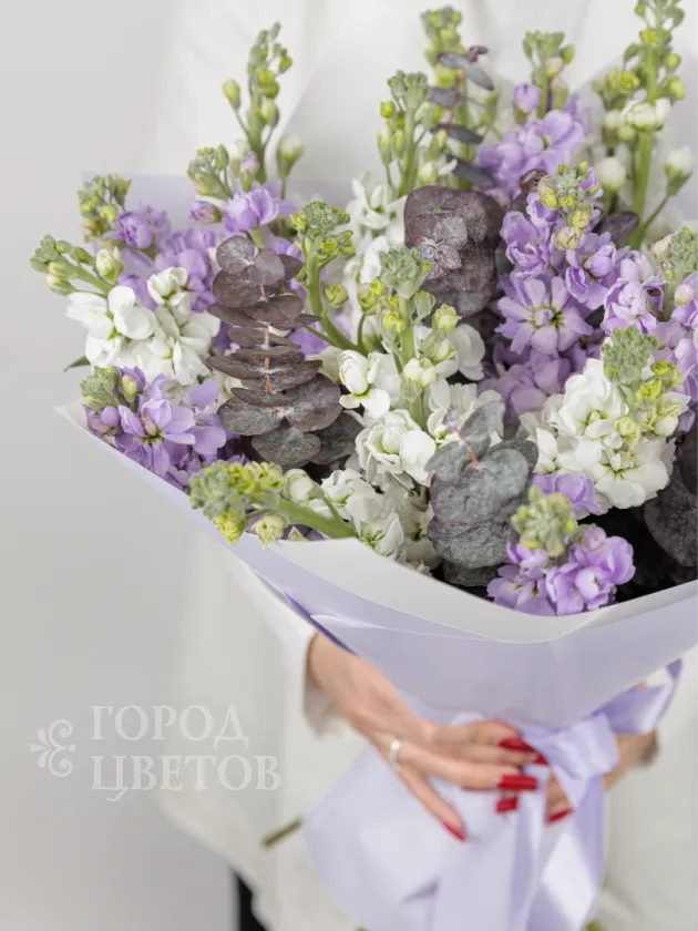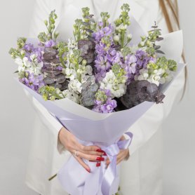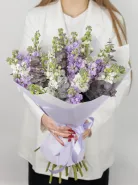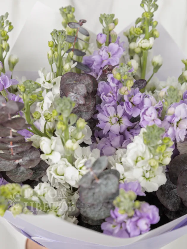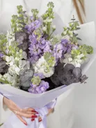 Этот изысканный букет — настоящее сочетание нежности и элегантности. В его составе аккуратно подобраны свежие цветы сиреневых и белых оттенков, создающие мягкую и романтичную атмосферу. Идеальный подарок для выражения любви, признательности или просто для того, чтобы поднять настроение близкому человеку. Букет оформлен в стильную упаковку и станет ярким акцентом любого праздника или особого события.