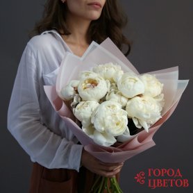 11 белых пионов