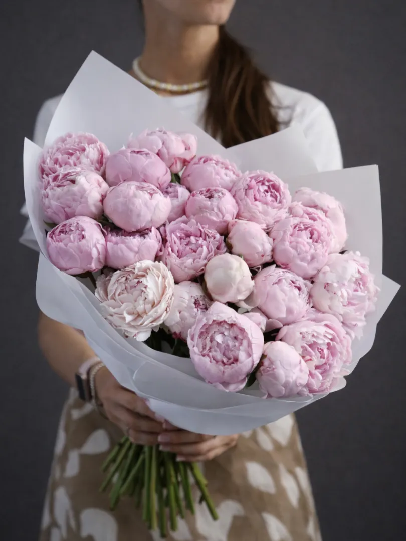Окутайте любимого человека атмосферой утончённости и романтики. Этот воздушный букет из пионов нежно-розового оттенка — идеальный выбор для признаний, поздравлений и искренних чувств.