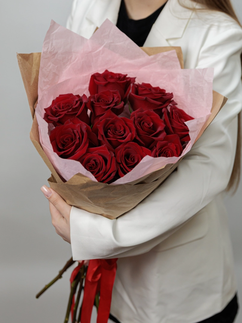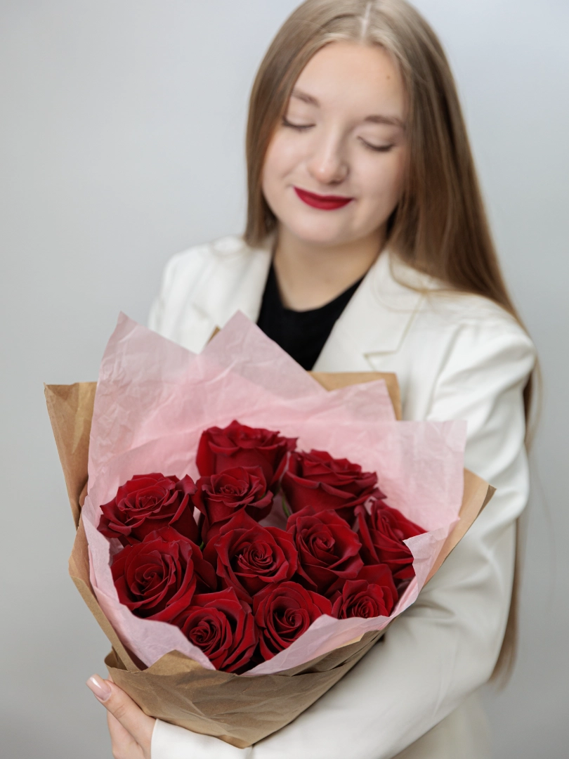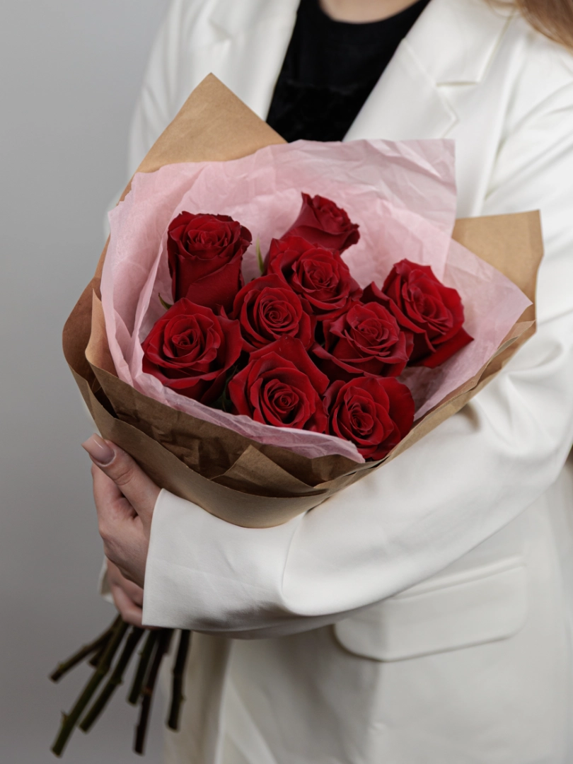 Очаровательный букет из 7 ярких красных роз — символ любви, страсти и искренних чувств. Каждая роза в этом изысканном композиционном ансамбле тщательно подобрана и красиво собрана, чтобы подчеркнуть особенность момента. Идеальный подарок для выражения своих чувств, признания или просто чтобы порадовать близкого человека. Элегантный и стильный, этот букет станет ярким акцентом любого праздника и непременно вызовет улыбку.