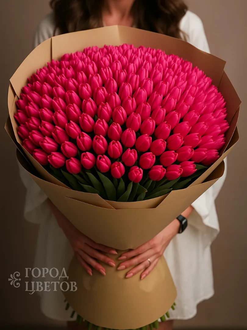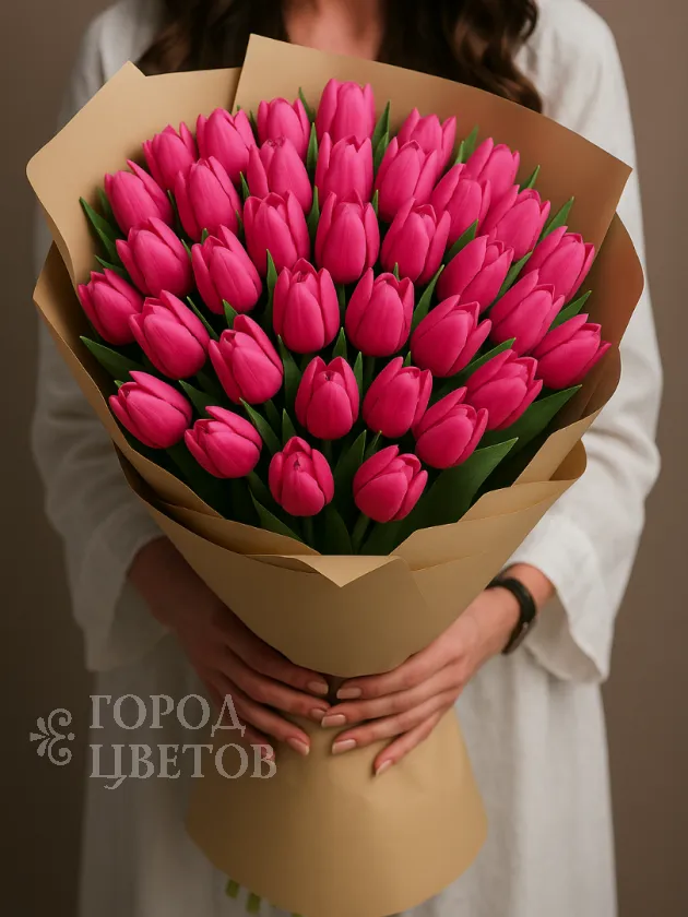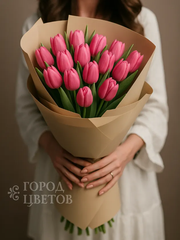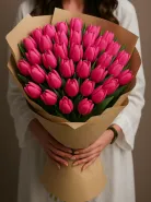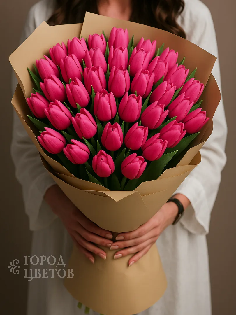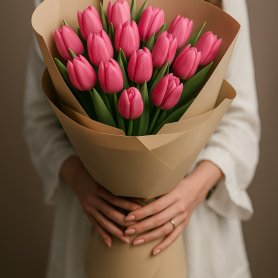 Букет из ярко-розовых тюльпанов идеальный выбор для подарка, наполненного нежностью и весенним настроением!