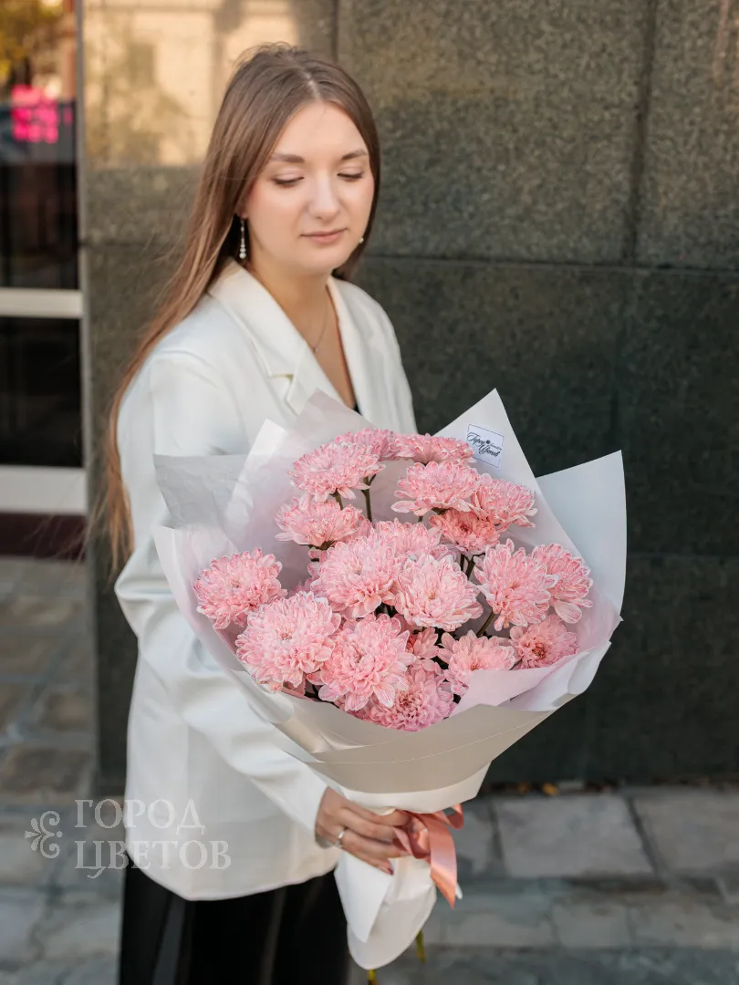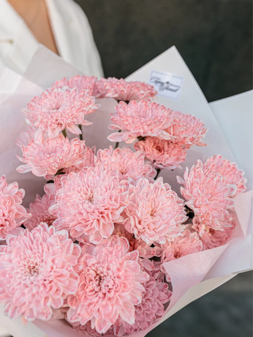 Этот букет — идеальный выбор для дня рождения, 8 Марта, Дня матери, первого свидания, признания в любви, поздравления коллеги или просто приятного сюрприза для близкого человека. Хризантемы славятся своей стойкостью, поэтому букет долго сохраняет свежесть и красоту.